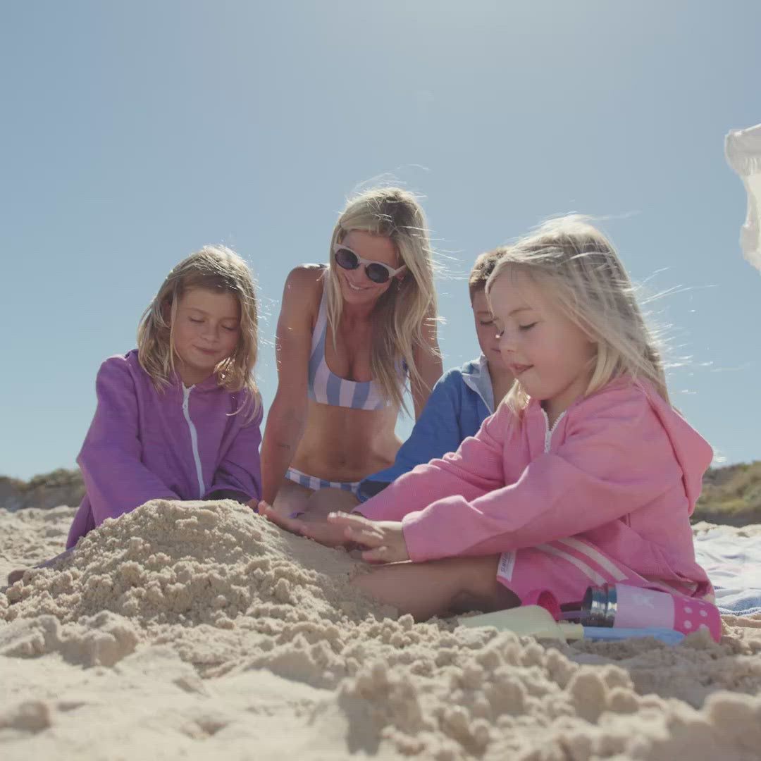 The TASSOS Kids Hooded towel comes with POCKETS & ZIP. Lightweight smooth weave inside and out, yet absorbent, quick drying & great to pop on when taking kids to swimming lessons, to the beach, or out and about during the warmer months. SAND FREE hoodie & towel in ONE! The long sleeves, comfortable hoodie & generous length gives your little one protection from the sun without making them feel restricted or hot.